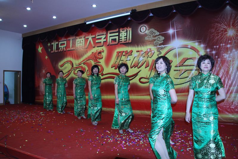 聯歡會在萬水千山總是情的音樂聲中拉開了序幕,陳平等身著旗袍、手拿香扇的后勤模特隊員,邁著整齊的步伐,在舒緩的音樂聲中,矜持地展現著后勤女職工優美、婀娜的身姿;飲食中心王蘭芬表演的京劇、良鄉食堂務工人員表演的豫劇,讓激昂、高亢的歌聲久久回蕩在晚會的上空;劉盼卿編寫的群口快板《后勤十大員》,由來自后勤各部門一線的保潔員、綠化員、炊事員、結算員、值班員等10人表演,由于作品創作和表演都直接來源于后勤工作和生活,受到了大家的熱烈歡迎;藏族舞蹈《天路》的表演者平均年齡45歲,獲得北京高校后勤第二屆文化藝術節優秀表演獎;潘潔等校舞蹈隊友情出演的《紅菱艷》、兒童演奏的葫蘆絲等節目贏得了陣陣掌聲;在歌唱祖國的歌聲中,汪志宏、張偉杰等表演的中式服裝秀將晚會推向了高潮。