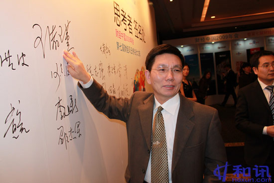 1月22日晚,由和訊網組織的2009年和訊財經風云榜頒獎在北京舉行,我校經濟學院保險學教授王緒瑾為上市公司獎中的“成長性新股公司”頒獎。中國人民銀行行長周小川獲年度財經人物獎,獎項還包括銀行業、證券業、保險業、基金業、期貨業、外匯業、上市公司等多個獎項。