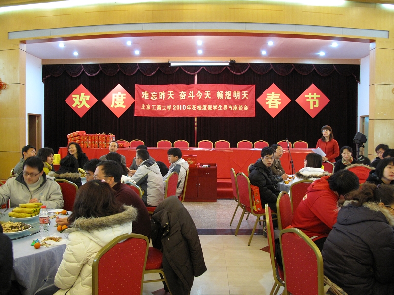 根據(jù)學校領導的指示精神,學生處會同各院系及有關部門對寒假留校學生相關事宜做出了周密安排。從留校學生人數(shù)統(tǒng)計、良鄉(xiāng)學生搬回阜成路校區(qū)后的安置,到安排學生參加勤工助學、組織學生參觀、開展體育比賽;從觀看北京電視臺年度十大教育新聞人物揭曉晚會,到今天的歡樂聚會,同學們的假期生活豐富多彩。