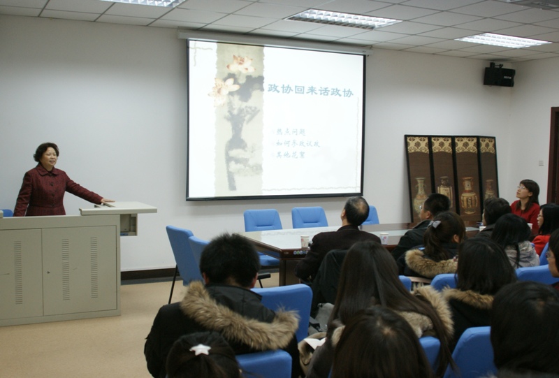 汪蘋教授不僅以一名教授,一名政協委員,而更是以一名普通群眾代表的身份,近距離、深切的向同學們介紹了一下自己作為兩屆政協委員所走過的心路歷程,介紹了作為一名代表如何代表群眾向國家表達意見和建議,汪蘋教授還風趣的向參會的師生代表“曬”了自己幾年來的代表提案。現場同學紛紛就自己感興趣的話題向汪蘋教授請教。