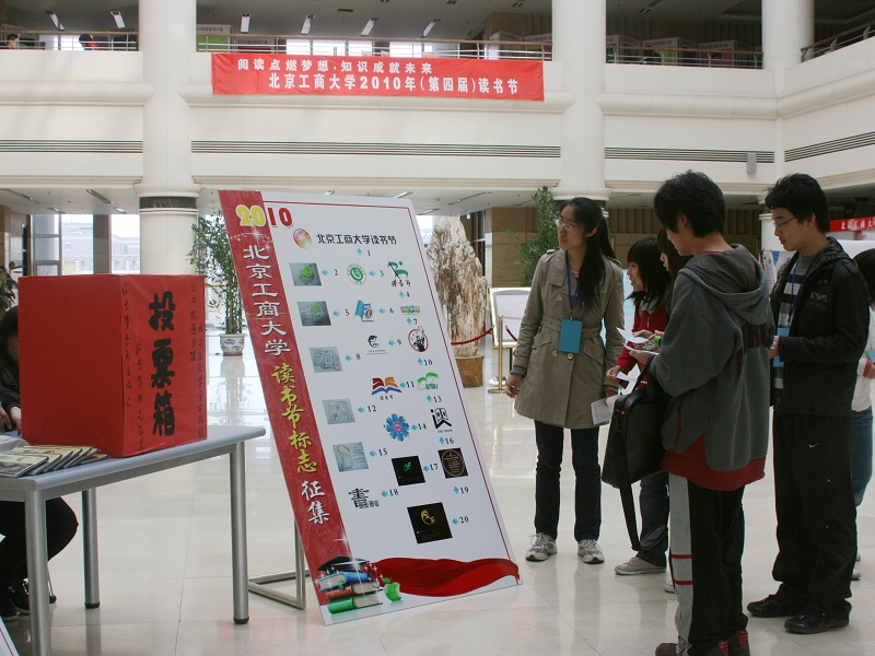 4月19日讀書節(jié)活動(dòng)首日,“2009年度北京工商大學(xué)讀書之星”評(píng)選結(jié)果揭曉,“讀書節(jié)標(biāo)志評(píng)選”開始投票、60部?jī)?yōu)秀圖書書評(píng)正式展出,由此拉開了我校2010年讀書節(jié)的序幕。
