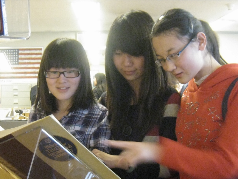 會館主任及工作人員熱烈歡迎老師同學們的到來,首先,美國駐華使館信息中心大中華區負責人致歡迎辭,希望大家能夠經常來中心查閱資料,更加深入了解美國,她表示中心全體工作人員會全力提供服務。在工作人員的引導下,同學們瀏覽了館藏珍貴原版書籍。中心負責人詳細介紹了中心職能、館藏資源等情況,并演示了ProQuest數據庫的查詢操作。同學們認真聽講,踴躍提問,得到了中心人員的肯定與贊揚。隨后,大家欣賞了耶魯大學精致的宣傳片。