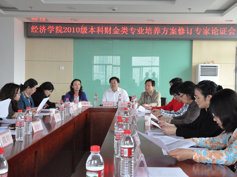 5月14日下午,經濟學院2010級本科財經類專業培養方案修訂專家論證會在阜成路舉行。經濟學院院長楊德勇和書記李寶仁出席會議,會議由教學副院長郭馨梅主持。