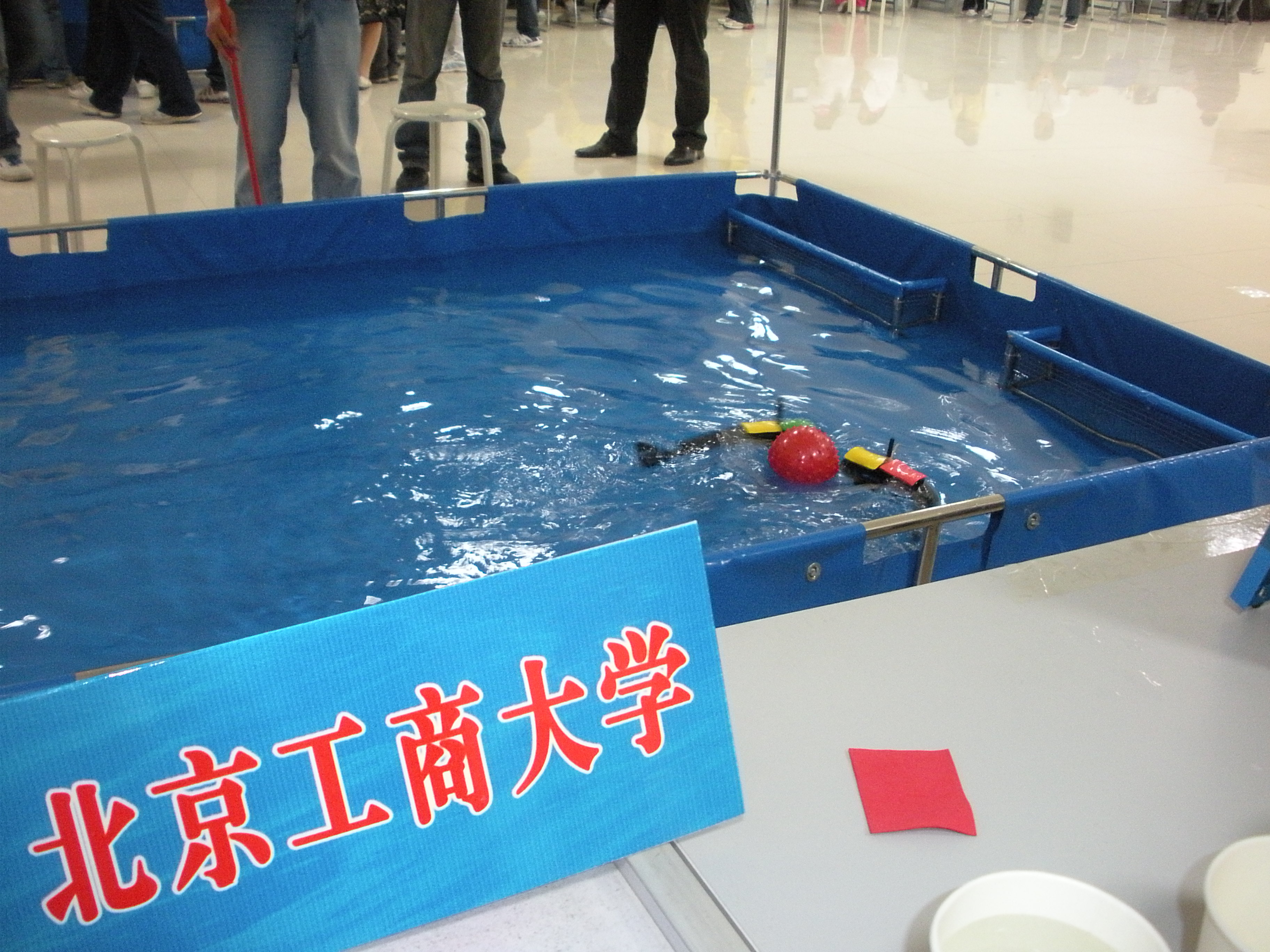 010中國水中機器人大賽暨第三屆水中機器人技術研討會于5月14-16日在山東大學開幕,包括北京大學、山東大學、華北電力等在內的18支高校代表隊參賽。我校代表隊共參加3個項目,分獲冠軍、亞軍及季軍各1項,為即將到來的北京工商大學60年校慶獻上一份禮物。