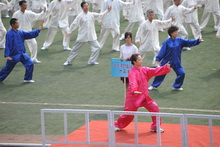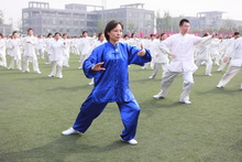 2009年國慶,我校教職工太極拳表演隊參加北京萬人太極拳表演破吉尼斯紀錄,這一太極拳傳統被傳承下來,2010年開學之初,為參加運動會的表演,各單位教職工都投入到訓練中。大家從最初的“零基礎”到能夠跟隨音樂準確做動作,再到整齊有序,這一過程中,600名老師們利用光盤模仿動作要領,找專職老師悉心指導,大家熱情高漲,訓練氣氛十分融洽,效果明顯。