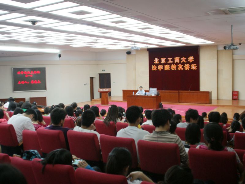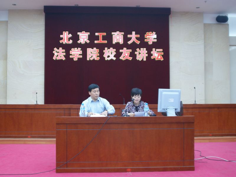 在主持人法學(xué)院(馬克思主義學(xué)院)黨總支副書記、學(xué)院校友分會(huì)常務(wù)副會(huì)長文四英簡要介紹并回放了2010年3月25日蔡院長一行參觀訪問北京工商大學(xué)的情況、蔡院長的簡歷及舉辦本次講壇的意義和目的后,法學(xué)院校友講壇正式開始。
