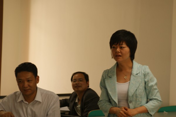 會議過程中,08級學生代表首先發言,他們針對老師授課方式的單一性、抽象性提出了整改意見,也對學院考勤制度的不合理性提出了自己的見解。對08級所提的問題,謝安平老師和文四英老師一一給予了解答,并把各項意見記錄在案,表示學院會認真考慮這些問題,并且給同學們一個合理的答復。同時三位老師也和同學們進行了意見的互換,這不僅讓同學們感受到了溫暖,也讓會議變得更加的輕松、愉悅。緊跟著,09級同學也提出了寶貴的意見,他們作為大一新生的代表,根據自身的特點,也從接觸不久的專業課中,有了切身的感受,提出了老師講課內容的不系統性等問題。交流過程中,他們充分體現了努力學習、積極進取的精神。最后,07級的學生代表做了總結,他們作為08、09級的學長、學姐,從老師授課上總結了經驗,提出了一些寶貴的意見,也讓學弟、學妹們更深刻的了解到各科老師授課的不同之處和可借鑒之處。