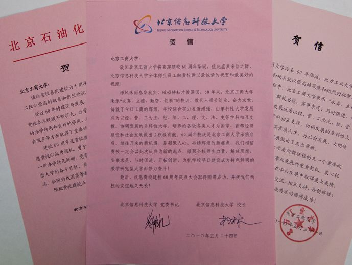 校慶前夕,兄弟高校紛紛發來賀信、贈送賀禮,熱烈祝賀我校建校60周年。