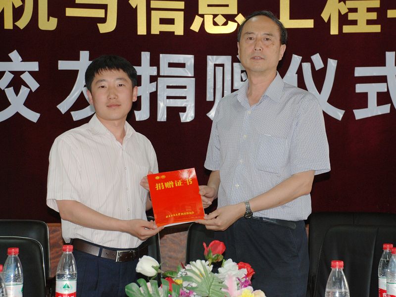 自控研82級校友紹光震先生(北京時(shí)林電腦有限公司董事長)委托代表送來10萬元轉(zhuǎn)帳支票,表示用于今后與學(xué)院的科研合作。