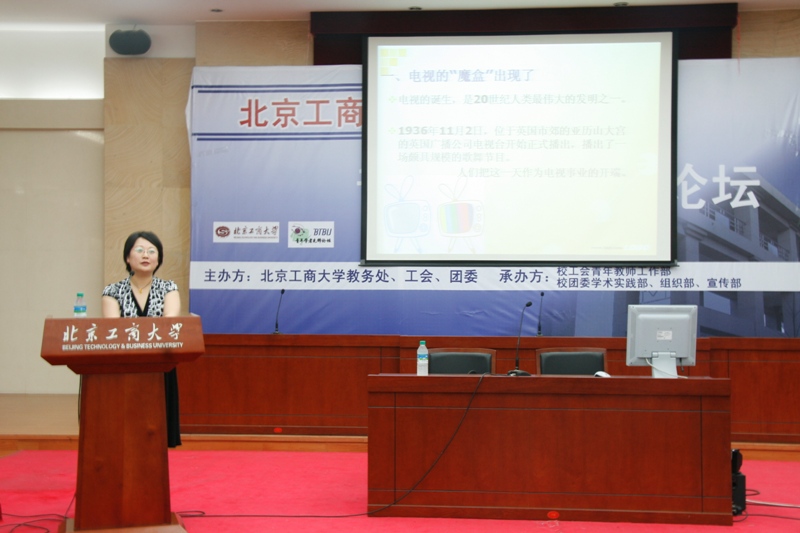 在論壇開始之前,尹老師為在座的同學們簡短地介紹了許莉老師,名牌大學的出身以及豐富的職場經驗不禁讓臺下的同學欽佩不已。許莉老師分別從電視媒介的誕生及發展歷程、受眾之所以熱愛電視的原因、新媒體帶來的新現象、媒介融合、電視的作用等幾個方面進行了介紹和闡釋。許莉老師講到,無論是傳統媒體還是新興媒體,由于各種媒體都有各自的優勢,所以傳統媒體不會被取代,只是有可能在不遠的將來媒體之間將會互相融合,電信網、互聯網、數字電視網“三網的融合”將會給人類的生活帶來更大的便利,同時人們的生活將從“看”電視轉變為“用”電視。傳統的擺在客廳的電視將同步完成上網購物、瀏覽信息、收看電視等多項服務。