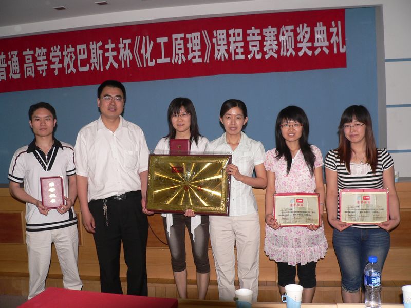 在2010年北京地區(qū)普通高等學(xué)校巴斯夫杯《化工原理》課程競賽中,我校化工學(xué)院07級學(xué)生積極參與,經(jīng)過筆試推選出兩個代表隊去參加實驗和答辯環(huán)節(jié)的決賽,通過代表隊隊員的共同努力,我校代表隊取得榮譽:兩隊均獲得競賽二等獎、并榮獲團體二等獎。
