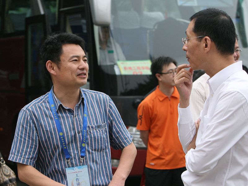 早上8點(diǎn),校友們陸續(xù)趕來,東、西校區(qū)的各個接待點(diǎn)忙碌個不停。伴著清風(fēng),各個學(xué)院及研究生部、后勤管理處的領(lǐng)導(dǎo)、老師們笑容滿面,迎接老前輩、老同事和老校友。大家緊握雙手,相談甚歡,登車準(zhǔn)備前往良鄉(xiāng)校區(qū)。