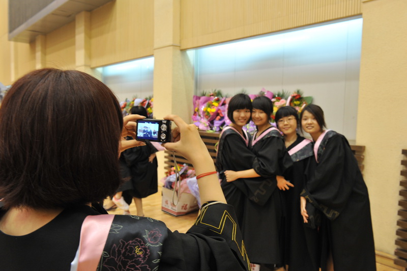 文二樓的長廊前一位同學一手拎著學士服,一手端著DV,嘴里念念有詞——他想把自己上課的地方記錄下來,配上自己的“解說詞”,作為送給自己的畢業禮物!