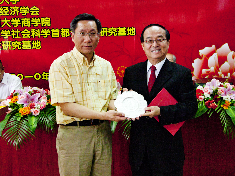 中國人民大學李金軒教授首先以“大陸傳統商學的創新與發展”為題,系統的介紹了我國大陸商學的過去、現在和未來發展趨勢,就如何通過創新以謀求生存和可持續發展提出了自己的觀點。臺灣成功大學經濟學研究所謝文真教授介紹了自己的研究方向,就人力資本與薪資之間的關系做了論證,做了“健康的人賺得多!? --人力資本與薪資之實證分析”的專題報告。