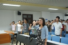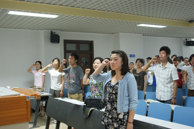 在本次紀念活動中,有4名入黨積極分子光榮的加入中國共產黨。會議上,全體黨員在鮮紅的黨旗下舉起右拳重溫入黨誓詞,黨總支副書記楊艷萍向全體學生黨員傳達了《關于在全校基層黨組織和黨員中深入開展創先爭優活動》的實施方案并發出號召:希望各位黨員發揮先鋒模范帶頭作用,積極學習,認真完成上級黨組織要求的學習任務;帶頭遵紀守法,弘揚正氣;帶頭創新,提高專業成績,積極參加校、院各種科技創新活動,爭做成才表率,帶動同學們共同進步。