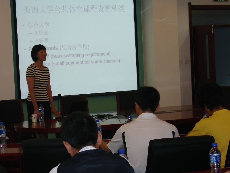 7月8日,應(yīng)我校體育與藝術(shù)教學(xué)部邀請(qǐng),美國(guó)南康涅狄克州立大學(xué)教授楊進(jìn)進(jìn)博士來(lái)到我校阜成路校區(qū),為我校體育教師舉辦了題為“美國(guó)大學(xué)公共體育課程”的主題講座。中國(guó)人民大學(xué)、北京郵電大學(xué)、首都師范大學(xué)、北京建筑工程學(xué)院、北京聯(lián)合大學(xué)體育部教師應(yīng)邀出席,體育與藝術(shù)教學(xué)部林永和教授及全體體育教師聆聽了講座,體育與藝術(shù)教學(xué)部主任顧紅主持講座。