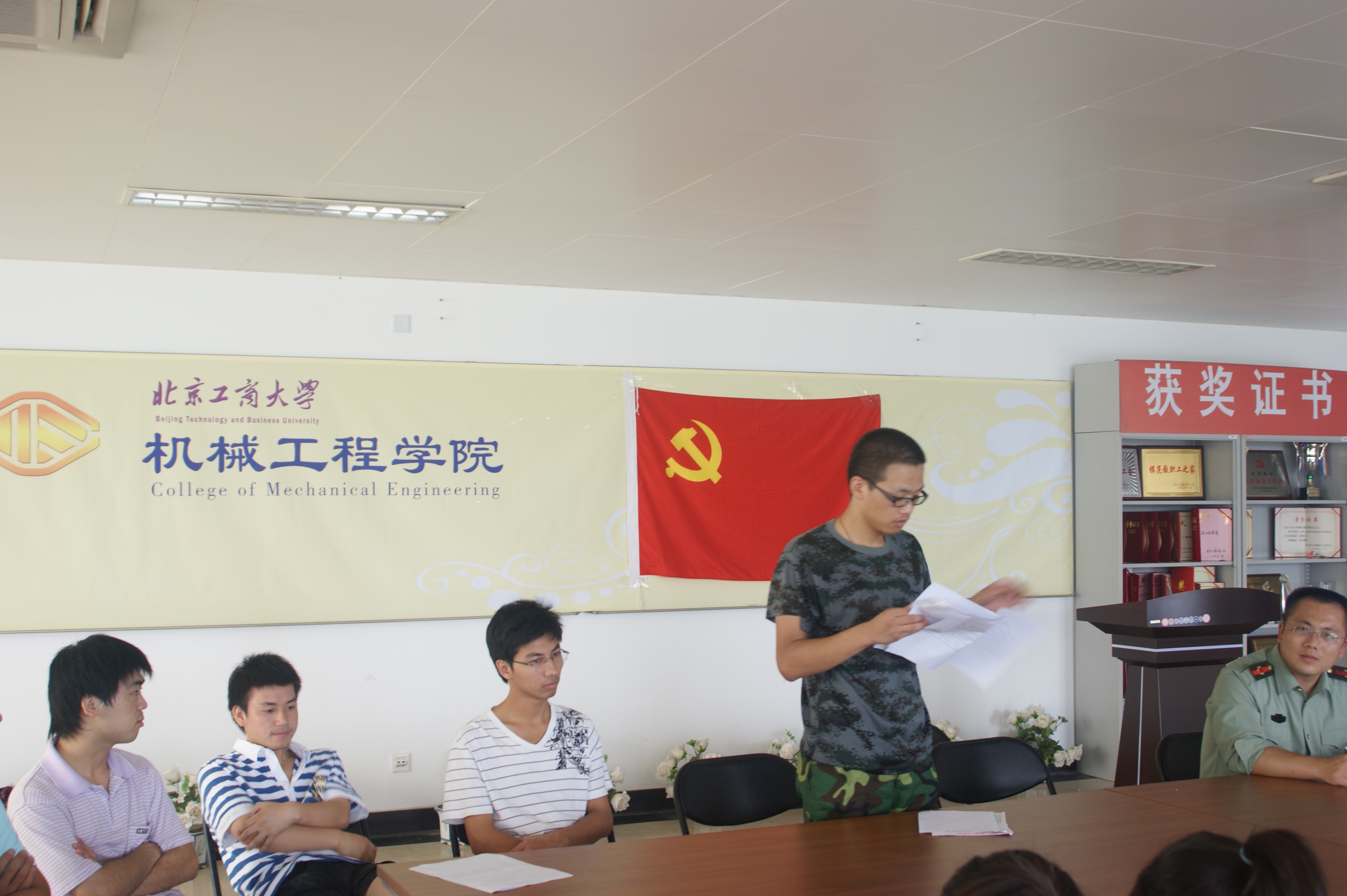 機(jī)械工程學(xué)院一直本著科學(xué)發(fā)展、成熟一個(gè)、發(fā)展一個(gè)的原則,并且逐步調(diào)整黨員結(jié)構(gòu),加大低年級學(xué)生黨員發(fā)展比重。在校黨委的大力支持下,學(xué)院黨總支科學(xué)規(guī)劃,學(xué)生黨支部積極而又審慎地發(fā)展,造就了今天學(xué)院黨員比例達(dá)到近20%,也培養(yǎng)了一批政治過硬、思想成熟、德才兼?zhèn)涞膶W(xué)生黨員隊(duì)伍。此次發(fā)展的兩名09級同學(xué)都是在高中時(shí)期就對黨有著堅(jiān)持不懈的追求,經(jīng)過大一近一年來的考察培養(yǎng),并且在此次軍訓(xùn)過程中表現(xiàn)也十分出色,因此黨支部按照黨員發(fā)展程序,報(bào)請上級黨組織批準(zhǔn),光榮地接收了兩名同學(xué)加入黨組織。會上,石鄭偉和李馭骉同學(xué)都鄭重表示,一定會在軍訓(xùn)的最后幾天中,繼續(xù)對自己高標(biāo)準(zhǔn)、嚴(yán)要求,充分發(fā)揮一名黨員的模范帶頭作用,在以后的學(xué)習(xí)、工作、生活中,也會時(shí)刻謹(jǐn)記入黨誓詞,刻苦學(xué)習(xí),踏實(shí)工作,生活簡樸,爭做一名優(yōu)秀的共產(chǎn)黨員。