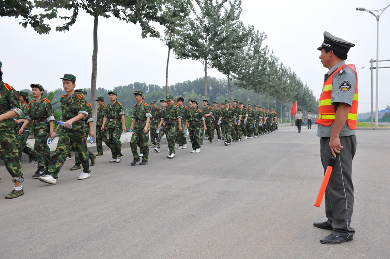 參訓師生的安全離不開保衛處工作人員的保駕護航,保衛處處長頓勁松表示,為此次軍訓,保衛處專門制定了軍訓安全工作保障方案,分工協調,全力以赴做好軍訓期間兩個校區的安保工作。副處長陶偉擔任軍訓團副團長,直接參與軍訓團管理工作。另外,保衛處還派專用車巡視訓練現場,及時處理暈倒、傷病等突發事件。為加強學生安全防范意識,保衛處將安全提示發放到每個宿舍,提醒同學防火、防盜等注意事項。