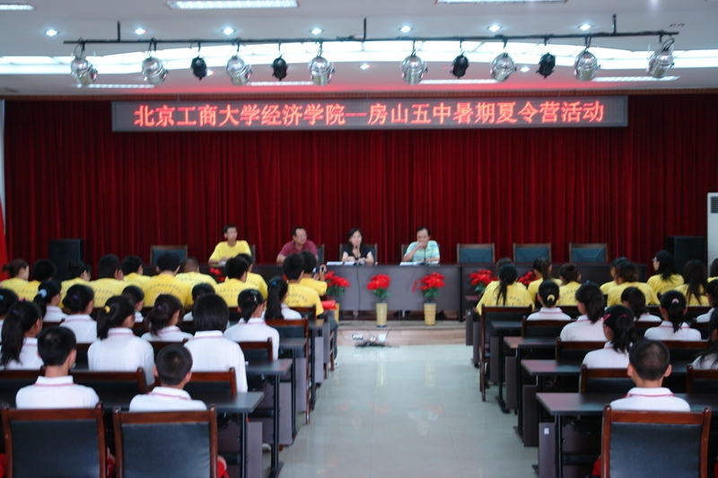 青草環繞,綠樹相伴。經濟學院實踐分團成員與房山五中師生在報告廳舉行了2010年暑期夏令營開營儀式,房山五中毛校長、王主任參加會議并發言。實踐分團成員與房山五中的同學見面。房山五中毛校長說:“我用五個詞貫穿我的發言:緣分、歡迎、感謝、要求、希望”。