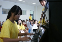 在向實踐基地房山五中進發的過程中,大家高呼心聲,齊聲喝彩,為大展身手機會的來臨和體驗成長道路的開始放聲歌唱。旅途中,同學們有的反復修訂自己的授課計劃和創意,有的借助3G網絡探尋授課經驗,有的接受著電視臺小組的采訪和攝影。個個摩拳擦掌,胸有成竹。