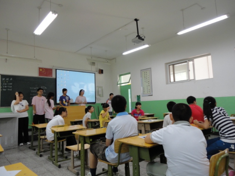 上午的課程結束后,實踐分團成員集合到會議室,帶隊老師楊凱帶領大家總結上午上課的得失,經過實際的授課,實踐分團成員們都有了實際的上課體會,大家認真查找問題,并找尋解決辦法。