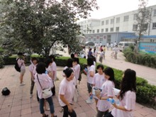 【藝術與傳媒學院實踐分團供稿】7月22日早上,藝術與傳媒學院實踐分團的成員們很早便起床洗漱,準備開始一天的實踐活動。上午7:45,已經有二十個左右良鄉四中的學生來到了學校,他們有的穿白短袖灰長褲的校服,有的穿著便裝,他們圍著學校的金屬雕塑嬉笑追逐打鬧,時不時好奇地看看多功能廳前統一著粉色T恤的支教學生,彼此竊竊私語。這一邊的支教學生同時也在觀察這些他們未來的學生,有所思忖。