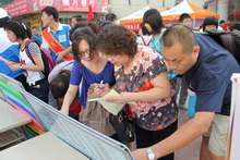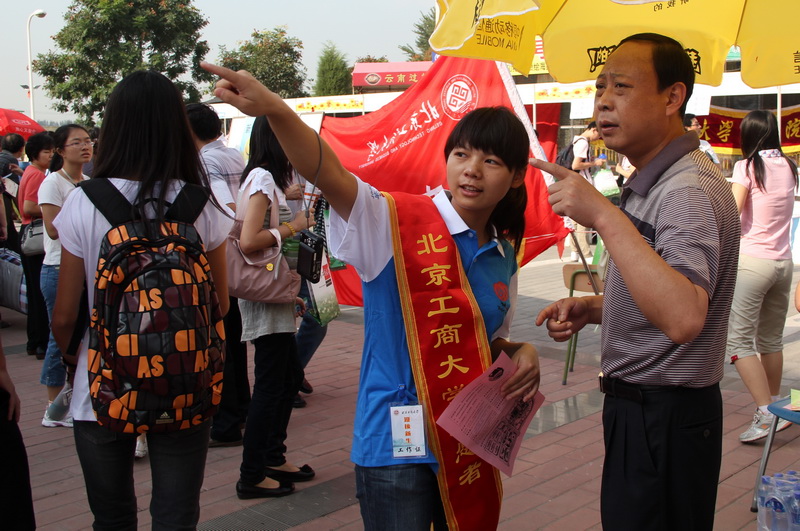 許多家長與學生一同走入校園,一路上有說有笑,喜氣洋洋。很多報到的新生一進學校就有志愿者全程“陪護”,這讓新同學們一到北工商就有家的感覺。志愿者將印有新生報到流程、工商地圖、新生服務指南等內容的校報迎新特刊發放到每一位新生手中,為他們答疑解惑。今年新生報到的一大特點是,學校開辟了“家長休息區”,解除家長路途疲勞、避暑乘涼。