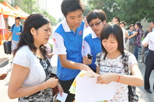 新生報到現場,各學院在龍月廣場及周邊地區設立站點,為新生提供全方位的信息咨詢服務,幫助學生登記、核對信息、領取校園一卡通等,各具特色,以周到熱情的服務迎接新生的到來。不少院系都準備了學生自己編寫的、具院系特色的迎新手冊,在學校發放的各類新生手冊的基礎上,加強對院系特殊的介紹,使得它對新生的指導更具針對性。