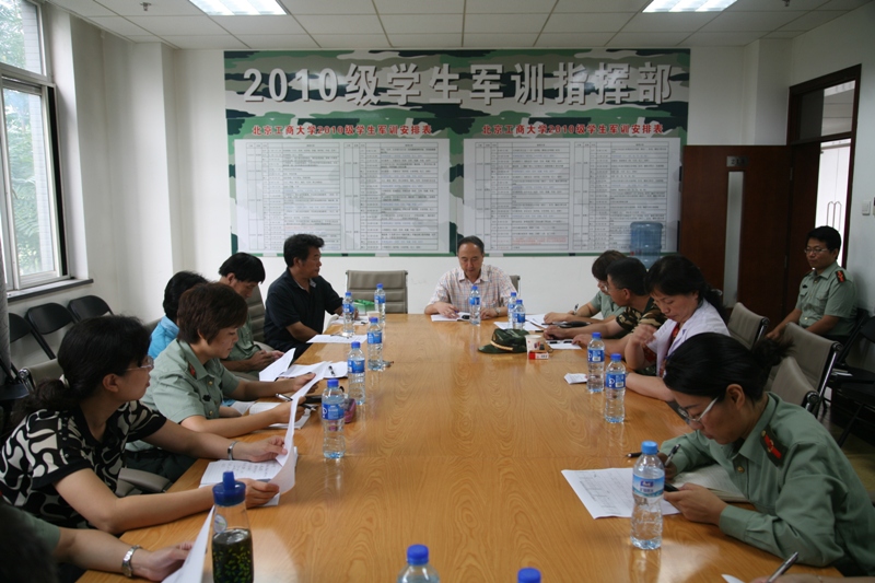 9月1日下午,軍訓指揮部召開會議,就訓練情況、內務評比、校園安全等問題進行了討論。會議由黨委副書記盧思鋒主持,軍訓團團長呂彥華中校以及軍訓指揮部各成員單位負責人、各院系黨總支副書記參會。