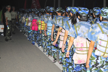 9月6日晚19點25分,打好背包、身著迷彩服的3000余名新生準時在良鄉校區操場列隊出發,開始了本次軍訓長達6.3公里的長途拉練。