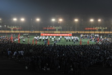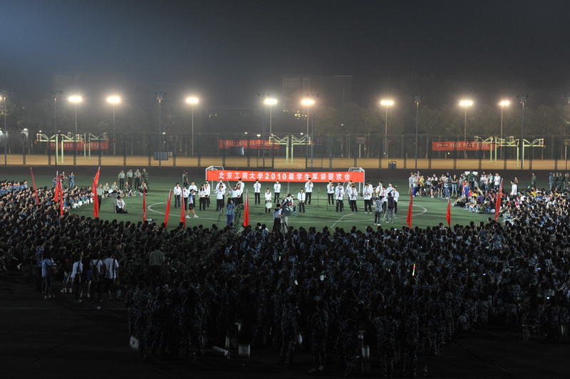 我校2010級軍訓聯歡會于9月9日晚8點半在良鄉校區操場舉行。校黨委副書記、軍訓總指揮盧思鋒,武警部隊副政委、軍訓團團長呂彥華中校,學生處處長、軍訓團政委呂素香,保衛處處長頓勁松,宣傳部副部長袁小年,學生處副處長、軍訓團副團長徐紅京,保衛處副處長、軍訓團副團長陶偉,校團委書記、軍訓團副政委呂良等領導出席與學生共度聯歡。各營教官及各院系輔導員或參與其中,或到場觀看。