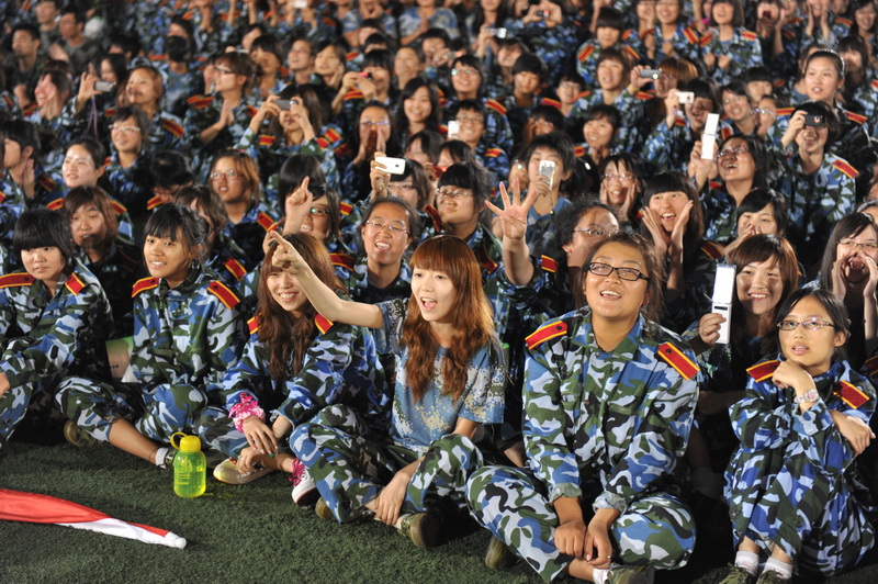 聯歡會結束后,學生們在教官的指揮下有序散場。