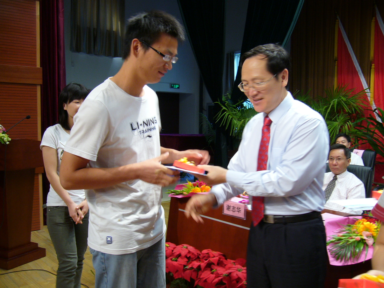 首先,胡俞越教授代表全體研究生導師發(fā)言,向新同學的到來表示歡迎。胡俞越教授勉勵研究生要把握大好時光,投入到知識的海洋,不斷求索,勤奮創(chuàng)新。他意味深長的說:“一日為師,終生為友”,認為沒有比學生取得成就更讓人欣慰的事,而老師只是學生的觀眾,時刻準備為學生們的成就而驕傲自豪。隨后,在校研究生代表和新生代表分別發(fā)言。高年級的楊帥同學在發(fā)言中希望新生能夠珍惜學習機會,珍惜同學和師生情誼,珍惜寶貴時間,不斷努力奮斗。并代表全體研究生祝老師們“教師節(jié)快樂”,此時,新生代表們向在場的領(lǐng)導和老師獻上了鮮花,表達學生們對師長們的節(jié)日問候和祝福之情,掀起開學典禮上的一個高潮。2010級新生韋碧雪代表新入學的研究生表示將會認真學習,努力鉆研,在科學探索的道路上不懈追求。