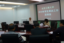 9月19日,學校2010年學生軍訓工作總結會在阜成路二層東會議室召開,參加會議的有校黨委副書記盧思鋒,2010年學生軍訓指揮部各成員單位領導以及各學院副書記和輔導員代表。會議由學生處處長兼武裝部長呂素香主持。