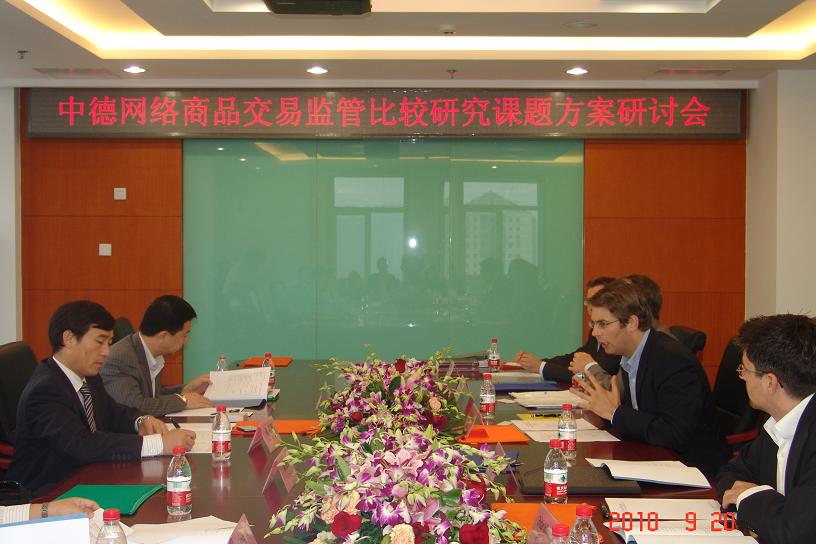 920的會議主要為該項目的專家研討會。該項目分為三個子課題,即中德網絡商品交易監管體制機制比較研究、中德網絡商品交易監管法律制度比較研究、中德網絡商品交易監管消費者權益保護比較研究。兩國專家就三個子課題的研究方案進行了詳細的討論。921中方和德方領導分別致辭,表達了對此次會議的支持以及對該研究項目的信心。該項目的主要專家分別就項目的研討方案發表了自己的意見和看法。專家顧問也結合各自的專業領域對該項目研究方案給予了參考意見。最后,中德雙方專家就彼此提出的研究設想進行討論,確定了該項目的最終研究方案。會議強調中德雙方專家分工明確,各司其職,協力合作完成本次項目任務。