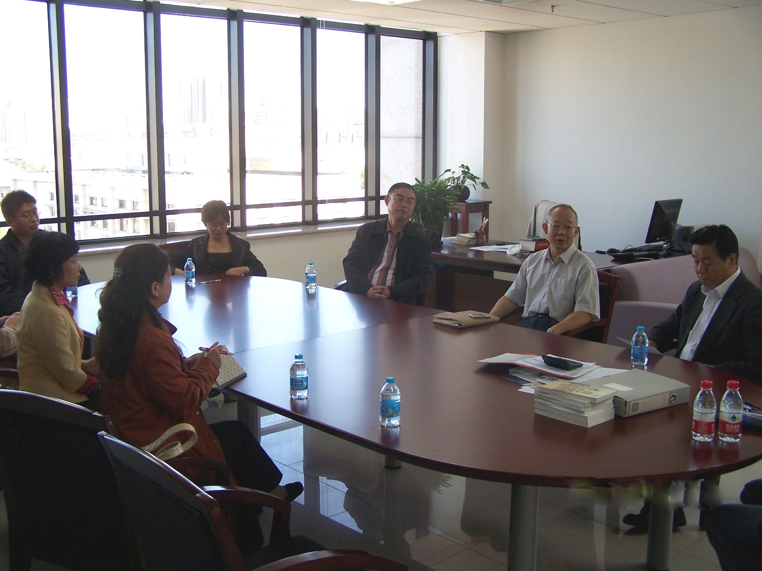 參觀結束后,對外經(jīng)濟貿(mào)易大學主管副校長胡福印、圖書館館長邱小紅與郭書記、李副館長及相關部門主任針對兩校“十二五”規(guī)劃的構建、圖書館如何為學校教學和科研提供更完善服務、隊伍建設、學科館員等共同關心的問題與我們進行了深入細致的探討。