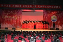 我校黨委副書記盧思鋒和天津科技大學黨委副書記潘秀山共同上臺發表講話。盧思鋒副書記表示此次兩校友好交流在這個大風降溫的天氣里讓我校感受到了春天般的溫暖,感謝天津科技大學為本次交流提供了各方面的支持。他希望兩校之間能夠繼續加強教學、科研等各方面的合作,希望兩校友誼長存。潘副書記引用我校同學表演的小品中的一個詞形容了他和同學們看完整場演出的感受:超幸福。他介紹了北京工商大學與天津科技大學的歷史淵源,并對我校藝術團的精彩演出表示感謝,他希望兩校友誼源遠流長,攜手發展,共創未來。