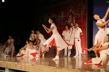 在聯誼晚會上,我校表演了樂器合奏、獨奏、合唱、對唱、獨唱、舞蹈、魔術、小品等多種形式的共計10個節目。管樂團帶來的《歡樂曲》在晚會一開始就把全場氣氛帶動起來,舞蹈團更是為同學們表演了他們的獲獎作品《校園變奏曲》,合唱團的一曲《領航中國》讓同學們重溫了國慶60周年時心潮澎湃的感受。每一個節目都贏來臺下觀眾的陣陣熱烈掌聲,不時還能聽到歡快的笑聲和開心的歡呼聲。