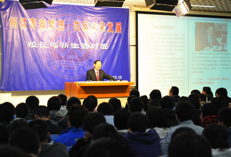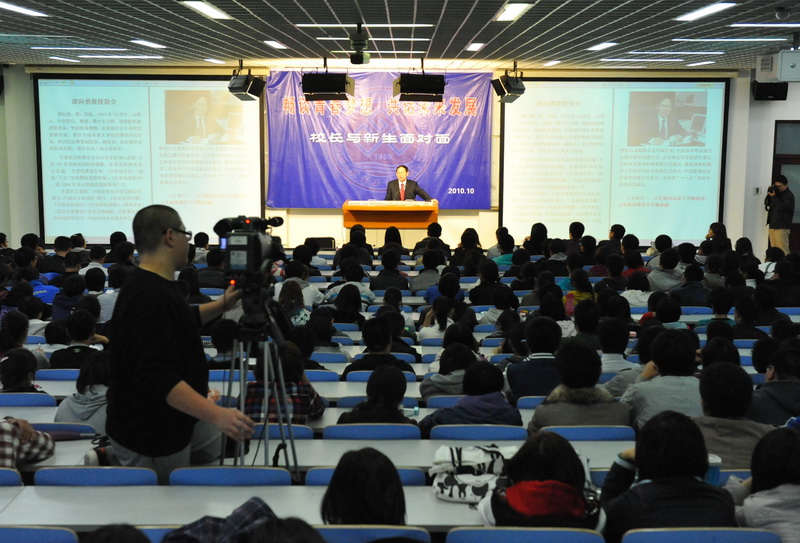 窗外秋雨瑟瑟,室內卻洋溢著熱情、歡快的氣氛,鮮明的對比正是10月18日晚譚向勇校長與2010級新生面對面活動現場的寫照。