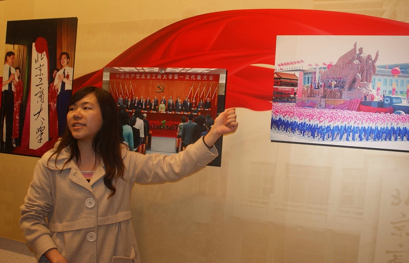 進入正門,“求真、立德、勤奮、創新”的校訓映入眼簾,其下鐫刻著慶祝建校60周年的前言。懷著崇敬而又好奇的心情,同學們在“導游”的帶領下對校史館進行了全面的參觀,進一步深化了對學校的了解。