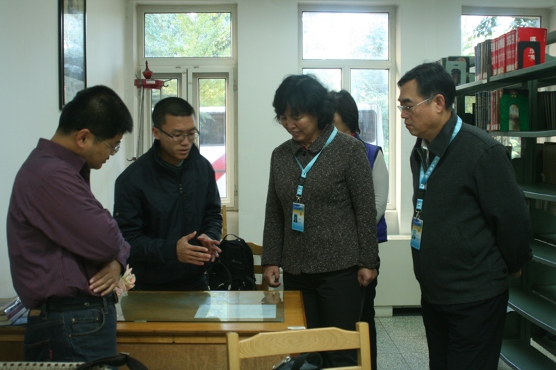 10月25日上午,圖書館館長高潤芝、機關(guān)二總支書記兼副館長郭一行、副館長張長恒在阜成路校區(qū)文學(xué)書庫進行勤工助學(xué)學(xué)生自治工作檢查。