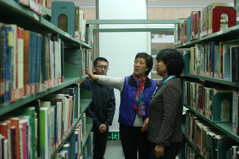 在聽取文學(xué)書庫負責同學(xué)的簡要匯報后,館領(lǐng)導(dǎo)對書庫的排架、消防及保潔情況進行仔細檢查,詳細詢問了“學(xué)生自治”工作展開后的人員安排、讀者服務(wù)、流通借閱等具體情況,并向正在工作中的同學(xué)們表示感謝。館領(lǐng)導(dǎo)對文學(xué)書庫勤工助學(xué)“學(xué)生自治”工作表示滿意。參觀結(jié)束后,高館長強調(diào),勤工助學(xué)學(xué)生參與圖書管理工作,不僅緩解了同學(xué)們的經(jīng)濟壓力,更重要的是對培養(yǎng)和發(fā)揮同學(xué)們自我管理、自我服務(wù)、自我教育等能力起到推助作用,是圖書館充分發(fā)揮教育職能、提高學(xué)生綜合素質(zhì)的重要途徑之一。由學(xué)生直接參與管理,有效地緩解了圖書館人員緊張的困難,老師們可以可以將更多的時間和精力用在深層次的業(yè)務(wù)工作上;同時對完善館藏資源信息反饋、加強讀者監(jiān)督、提高圖書館影響力等方面起到積極作用。高效的管理方法將使我館的管理水平和服務(wù)質(zhì)量得到進一步提升。