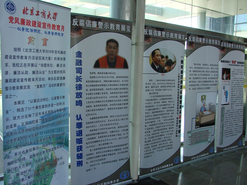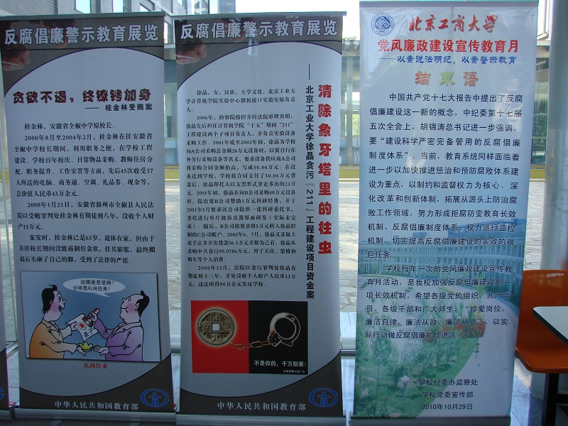 按照《北京工商大學(xué)2010年黨風廉政建設(shè)宣傳教育月活動實施方案》的具體要求,我校正在開展以“珍愛崗位,廉潔自律,廉潔從政,廉潔從業(yè)”為主題的黨風廉政建設(shè)宣傳教育月活動,舉辦反腐倡廉警示教育展覽是“宣教月”活動的重要內(nèi)容之一。