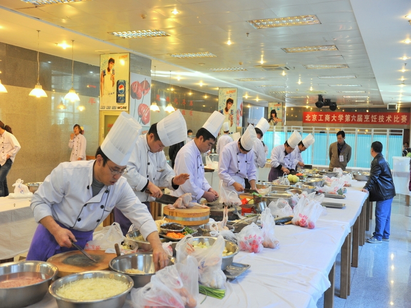2010年11月13日,后勤飲食管理科在良鄉校區和苑餐廳舉辦北京工商大學第六屆烹飪技術比賽。副校長呼文亮、張耘及其它部門相關領導到現場觀摩指導。
