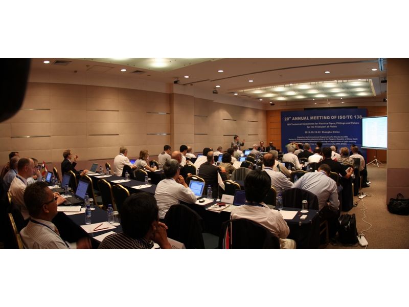ISO各技術委員(TC)的會議定期在不同國家召開。本次TC138的會議即是“流體輸送用塑料管材、管件及閥門標準化技術委員會(TC)”的工作會議。TC138下設7個分技術委員會(SC):分別為污、廢水和排水 (包括農用排水)用塑料管材和管件分技術委員會(SC1)、供水用塑料管材和管件分技術委員會(SC2)、 工業用塑料管材和管件分技術委員會(SC3)、氣體燃料供給用塑料管材和管件分技術委員會(SC4) 、塑料管材、管件、閥門及其他配件的一般性能、基本試驗方法及規范分技術委員會 (SC5) 、 各類增強塑料管材和管件分技術委員會(SC6) 、 閥門和塑料附屬設備分技術委員會(SC7)。本次上海會議除TC138大會外,還召開了各SC會議及工作組會議(WG)等20場。