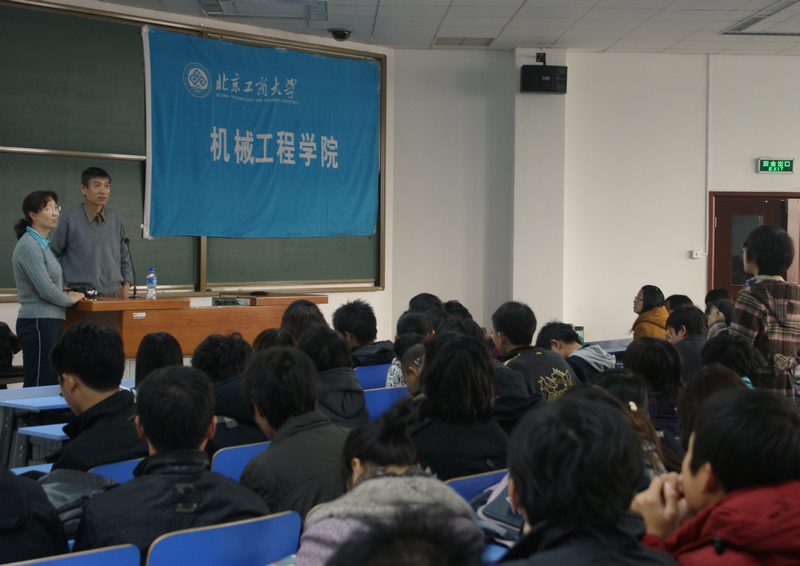 機械工程學院黨總支副書記田宏,學院輔導員,部分任課老師,08級學生以及09級全體學生聽課,觀摩課由機械工程學院黨總支副書記主持。
