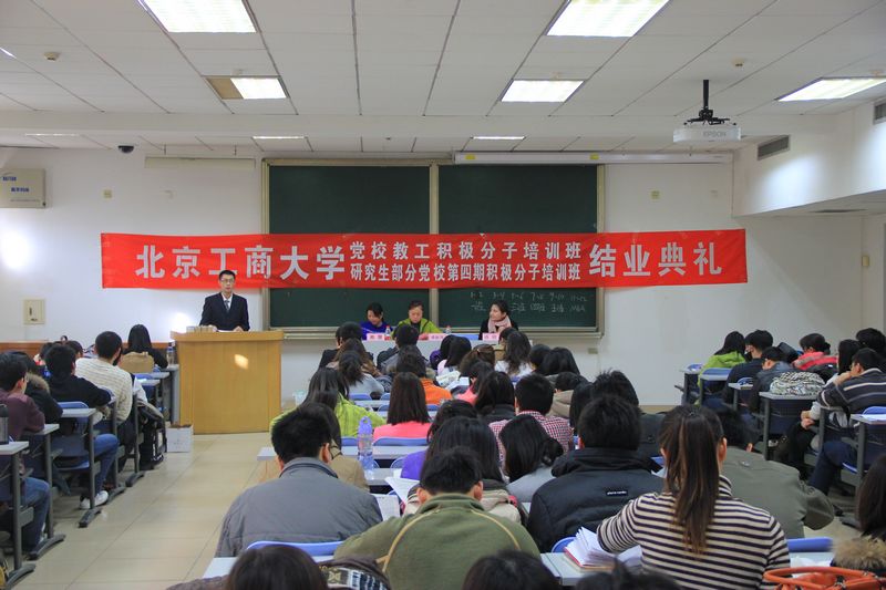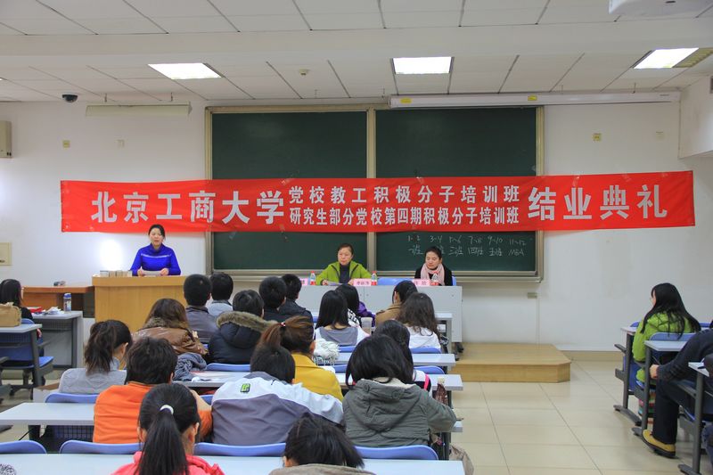 11月27日上午9時,北京工商大學(xué)黨校教工積極分子培訓(xùn)班暨研究生部分黨校第四期積極分子培訓(xùn)班結(jié)業(yè)典禮在阜成路校區(qū)舉行。校黨委組織部副部長、黨校辦公室主任李躍萍,研究生部黨總支副書記、研究生部分黨校副校長熊慧,研究部團(tuán)總支書記許欣,以及研究生黨建小組部分成員,教工和研究生入黨積極分子130余名參加了此次結(jié)業(yè)典禮。大會由黨校兼職輔導(dǎo)員趙煒主持。