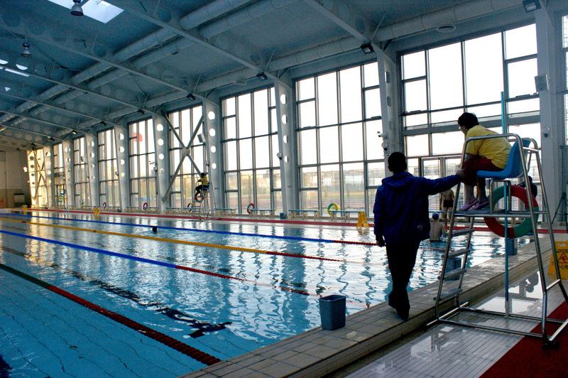 據了解,游泳館一共四名專業救生員,都是經過我校嚴格選拔錄用的。他們都是經驗豐富,熱愛游泳的專業人士,不僅有北京市國家體育總局救生協會頒發的“游泳救生證”,還有“身體健康證”,部分救生員更是全國游泳比賽的獲獎選手。3名救生員各自居于游泳池三面的救生臺上,時刻注意著游泳池里的情況;另一名救生員則是流動巡邏,保證能最快處理突發狀況。