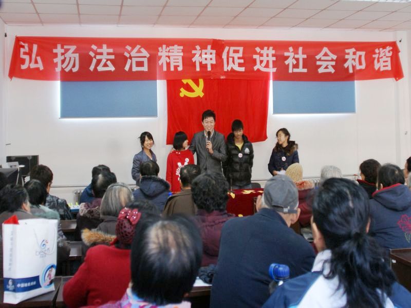 此次活動共有40余名居民參與,并現(xiàn)場接待了10余人咨詢相關(guān)的法律問題,同時向居民發(fā)放法制宣傳資料80份,教育居民增強法制意識和自我保護意識,自覺學(xué)法、守法和用法。當(dāng)自身權(quán)益受到侵犯時,學(xué)會運用法律武器保護自身的合法權(quán)益。夏莊文化社區(qū)的工作人員的積極支持與配合我校活動,當(dāng)?shù)鼐用褚步o予了大力支持,活動現(xiàn)場座無虛席,氣氛十分活躍。
