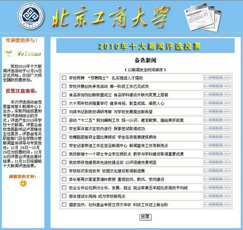 我校2010年十大新聞評選活動于12月24日正式開始,歡迎廣大師生踴躍投票參加。